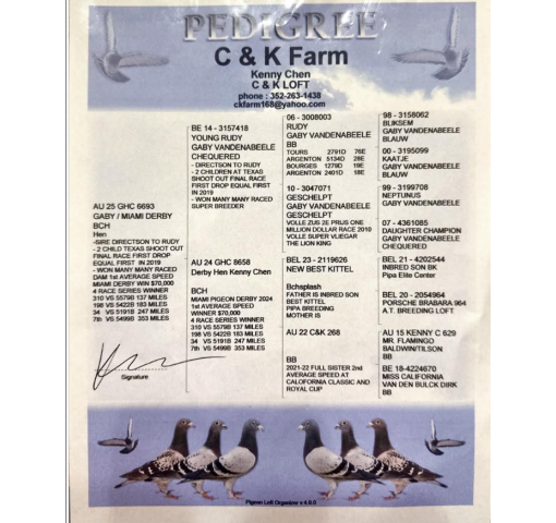 MIAMI PIGEON DERBY 2024 1ST AVERAGE SPEED WINNER $70,000