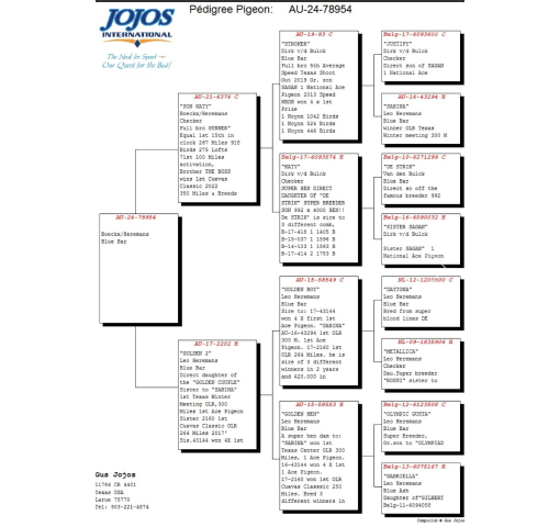 Direct daughter of the Golden Couple sister to Sabina, 1st Texas Winter Meeting OLR 300 miles 1st ace Pigeon