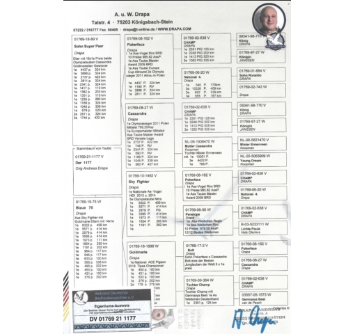 Son of Pokerface and Cassandra, the foundation pair of Drapa! These pigeons have won countless races and ace pigeon awards!!