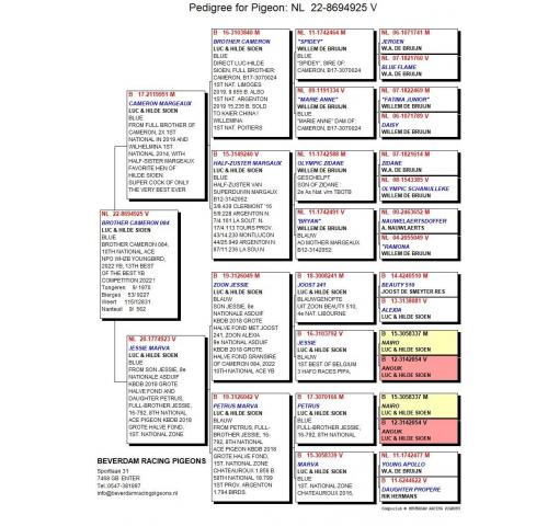 FROM FULL BROTHER OF CAMERON, 2X 1ST NATIONAL IN 2019 AND WILHELMINA 1ST NATIONAL 2014, WITH HALF-SISTER MARGEAUX FAVORITE HEN OF HILDE SIOEN.
