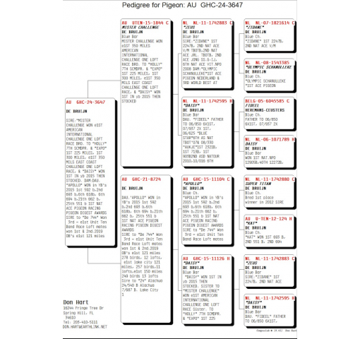SIRE to "De44" Won 3rd = 1st Unit Ten Band Race Loft mates won 1st & 2nd.2019 OB's