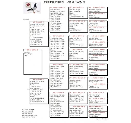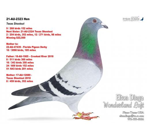 Father: 21-AU-2346 - Texas Shootout (Grandson of Black Power x 1st Champion Bird - Texas Shootout 2017, Ad Schaerlaeckens)