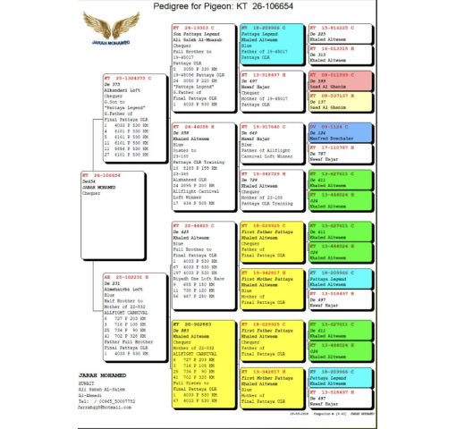 Bred from a full brother to 'Gold Diamond Winner' 1st Final Pattaya OLR 4033 pigeons 530km! Also full sibling to 67th vs 4033 pigeons 530km.