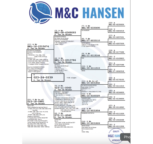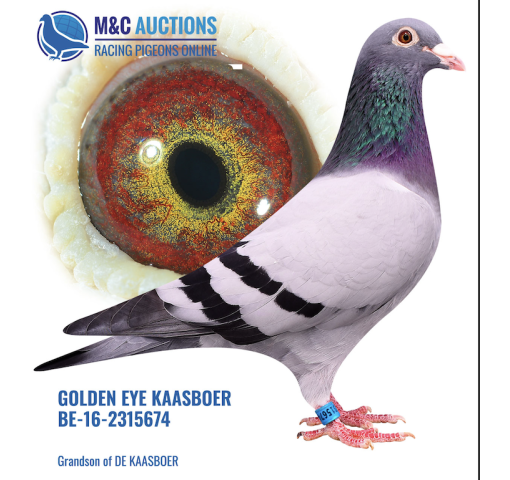 **There is an additional $290 import fee to be added to the price of the pigeon. The pigeons are already with BestPigeons in perfect health, ready to ship!   From the winning lines of Gaston Van De Wouwer.     Sire: BE-16-2315674 GOLDEN EYE KAASBOER