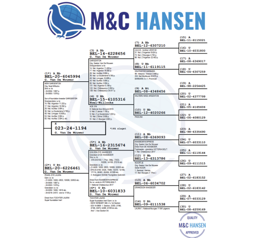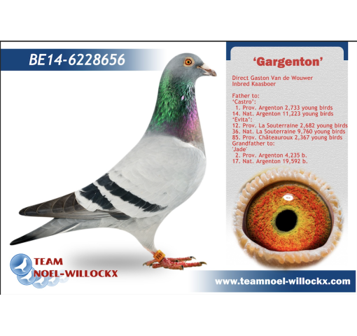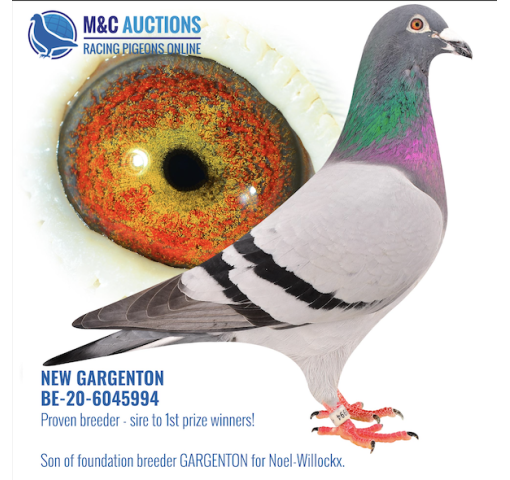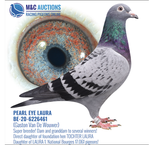**There is an additional $290 import fee to be added to the price of the pigeon. The pigeons are already with BestPigeons in perfect health, ready to ship!   Gaston Van De Wouwer bloodlines!    The pair bred 2 winners!     Sire: BE20-6045994 NEW GARGENTON. Original Noel-Willockx from the famous GARGENTON, original Gaston Van De Wouwer and superbreeder.    Dam: BE20-6226461 PEARL EYE LAURA. Very good breeder. Dam of several winners.  Direct daughter of the foundation hen TOCHTER LAURA. She is the dam, granddam and greatgranddam to a lot of winners all over the world! One of the best hens ever on the loft!