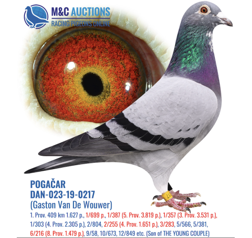 **There is an additional $290 import fee to be added to the price of the pigeon. The pigeons are already with BestPigeons in perfect health, ready to ship!   AUCTION HIGHLIGHT! Directly from champion POGACAR!