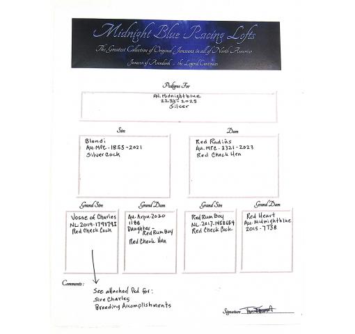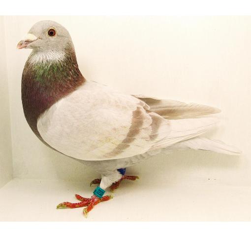 AU 25 Midnightblue 2233 Silver Cock.  The fine light silvers of the Janssen Brother Line.  The Red and Silvers were the pigeons in most demand throughout the history of the great family of pigeons.