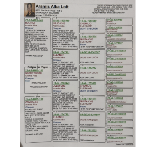 PEDIGREE ADDED ARAMIS 357 - ARAMIS ALBA