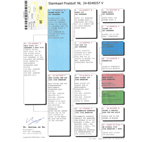 „BEST ROSSI 257” WE SEE NIEUWE ROSSI, EENOOGSKE, BOLT OF LEO HEREMANS IS THE PEDIGREE AND MOTHERS SIDE INBRED TO WORLDFAMOUS SUPERSTAR „BEST KITTEL”