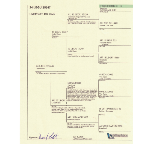 Sire: 19 LEGU 19357 - Kittel lines, Kannibaal Kid, Leo Heremans and Janssen/Van Loon. Linebred to my best!