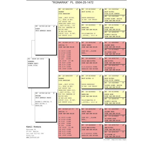 Dam: DV 01769 24 81 - Granddaughter of Best Kittel II, Angelina, Uncle Venus, and Child New Kittel